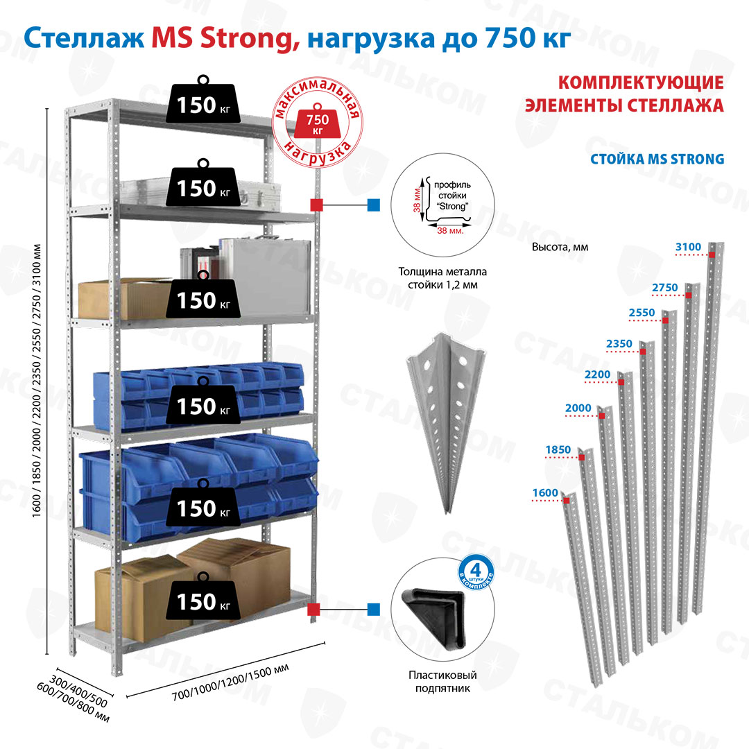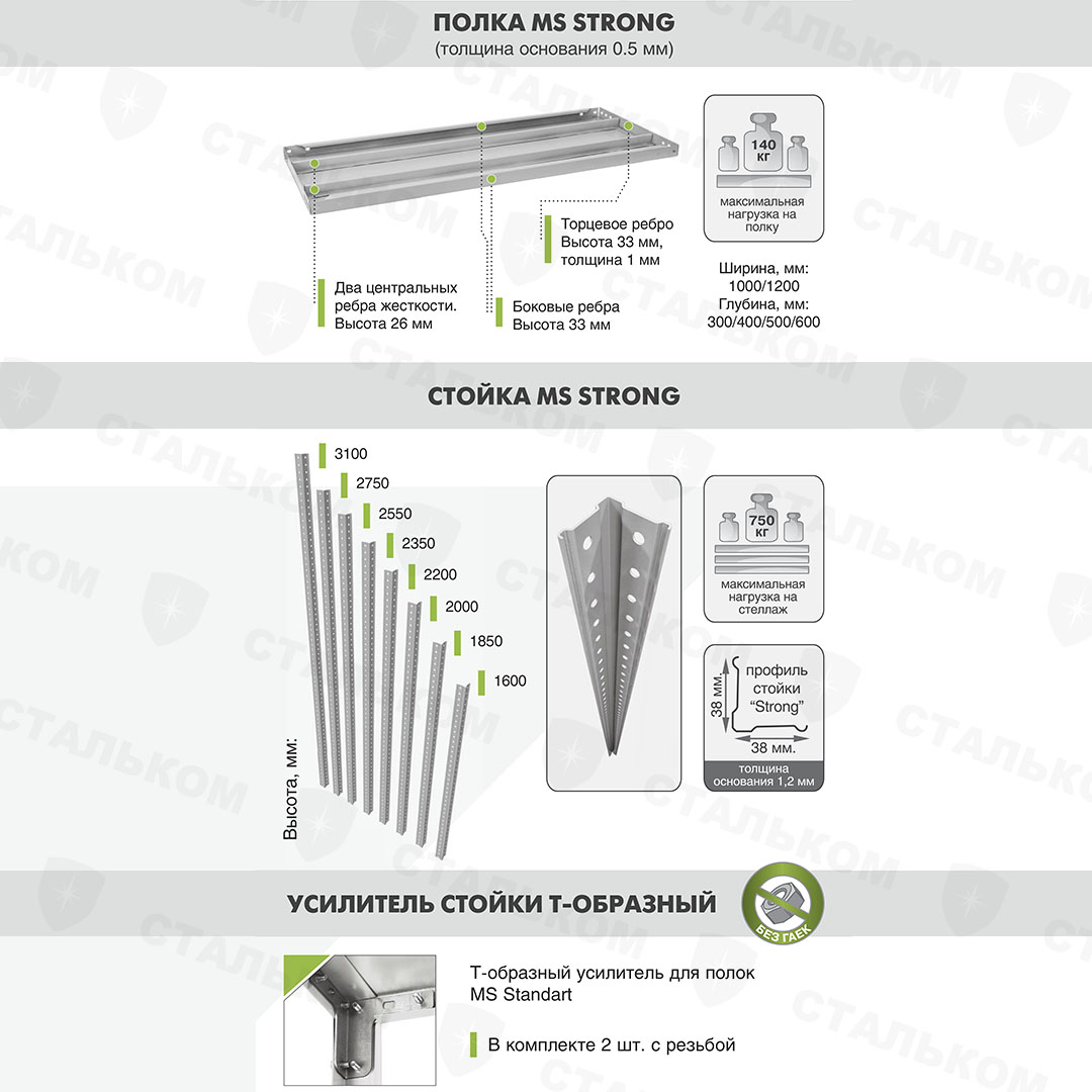 Купить стеллаж MS Strong 2750х1200х400, 6 полок в Феодосии с доставкой