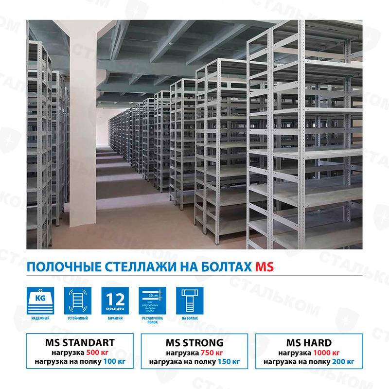 - Стеллажи MS Standart, 500 кг на секцию